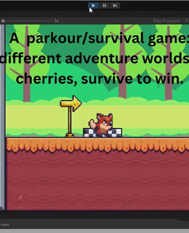 This game consist of two level parkour, where the mission is to cross all the danger, collect cherries, and cross